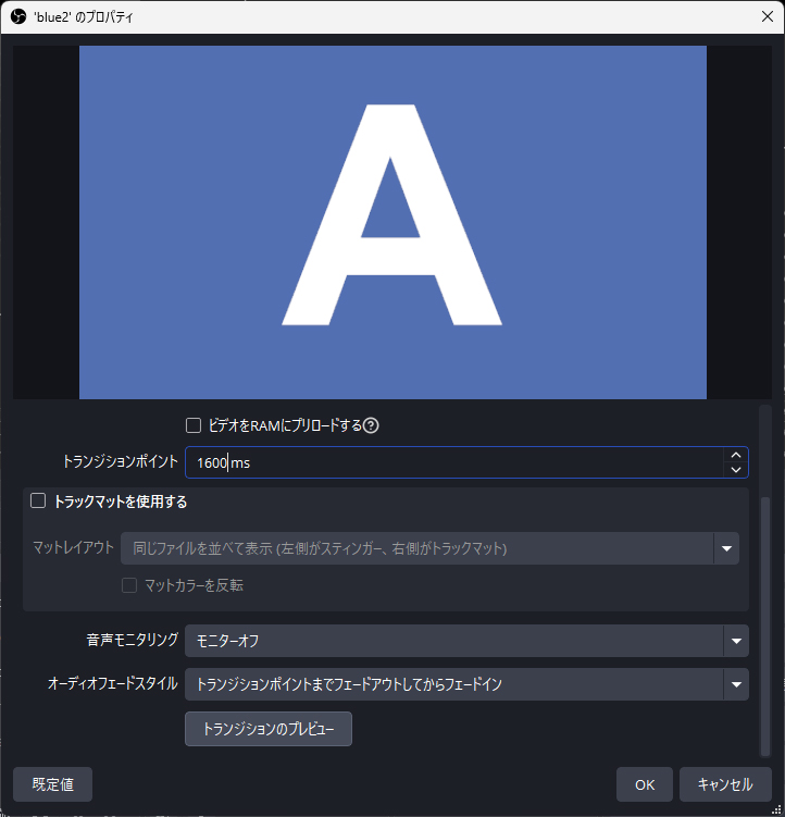 OBSにはデフォルトのトランジションがいくつか入っています。